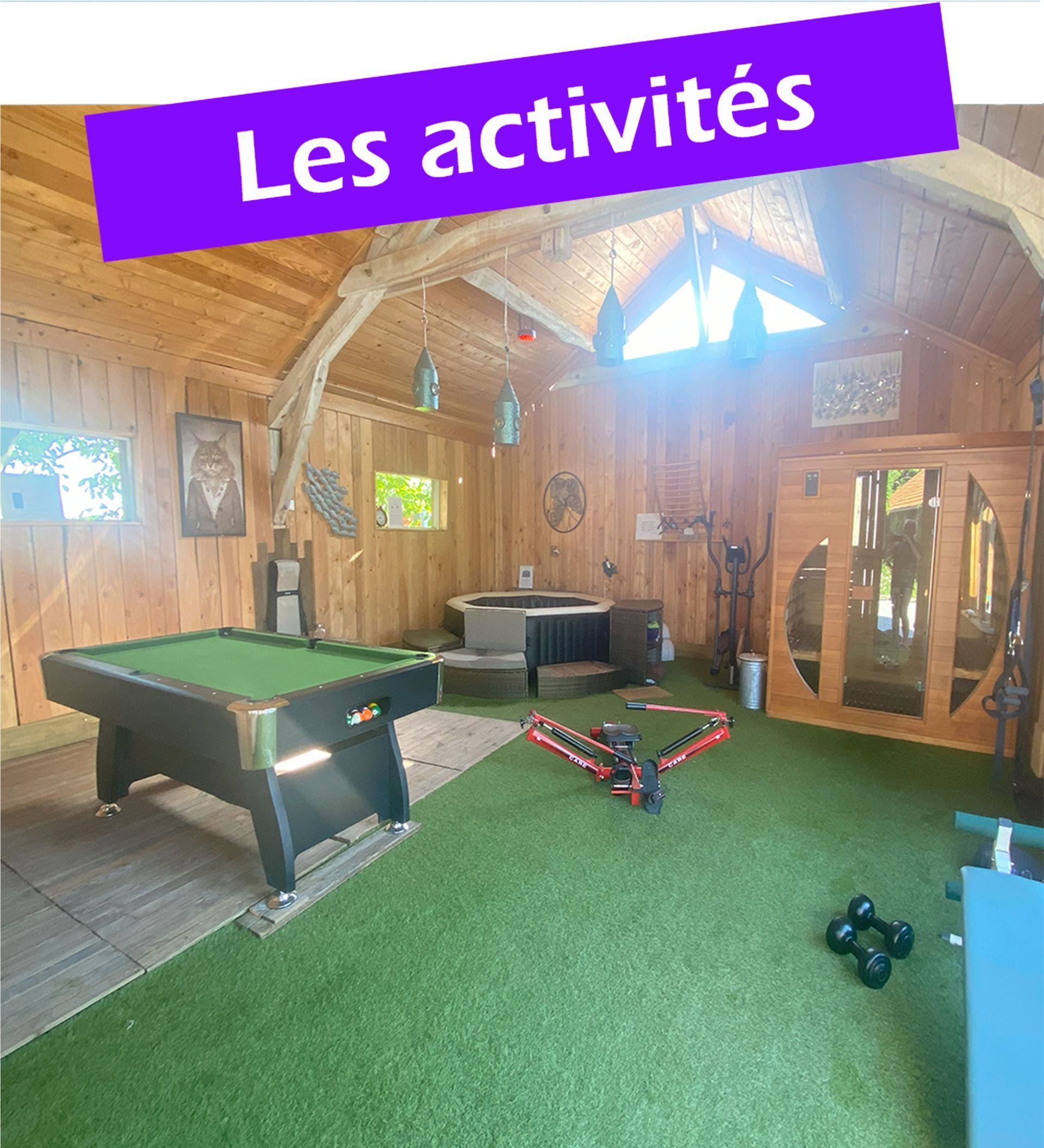 Une piscine, un spa, un sauna, les massages, un billard, un baby-foot, des terrains de boules, du tir à l'arc, un brasero, des appareils fitness, des terrasses, des heures de détente dans le calme de la campagne, des petits déjeuners, des déjeuners, des dîners, un bar, des cocktails, des instruments de musique, des chansons, quatre salons privés, une salle de réception pour jouer, danser, chanter, apprendre, une cave de dégustation, un parc, un grand parking privé