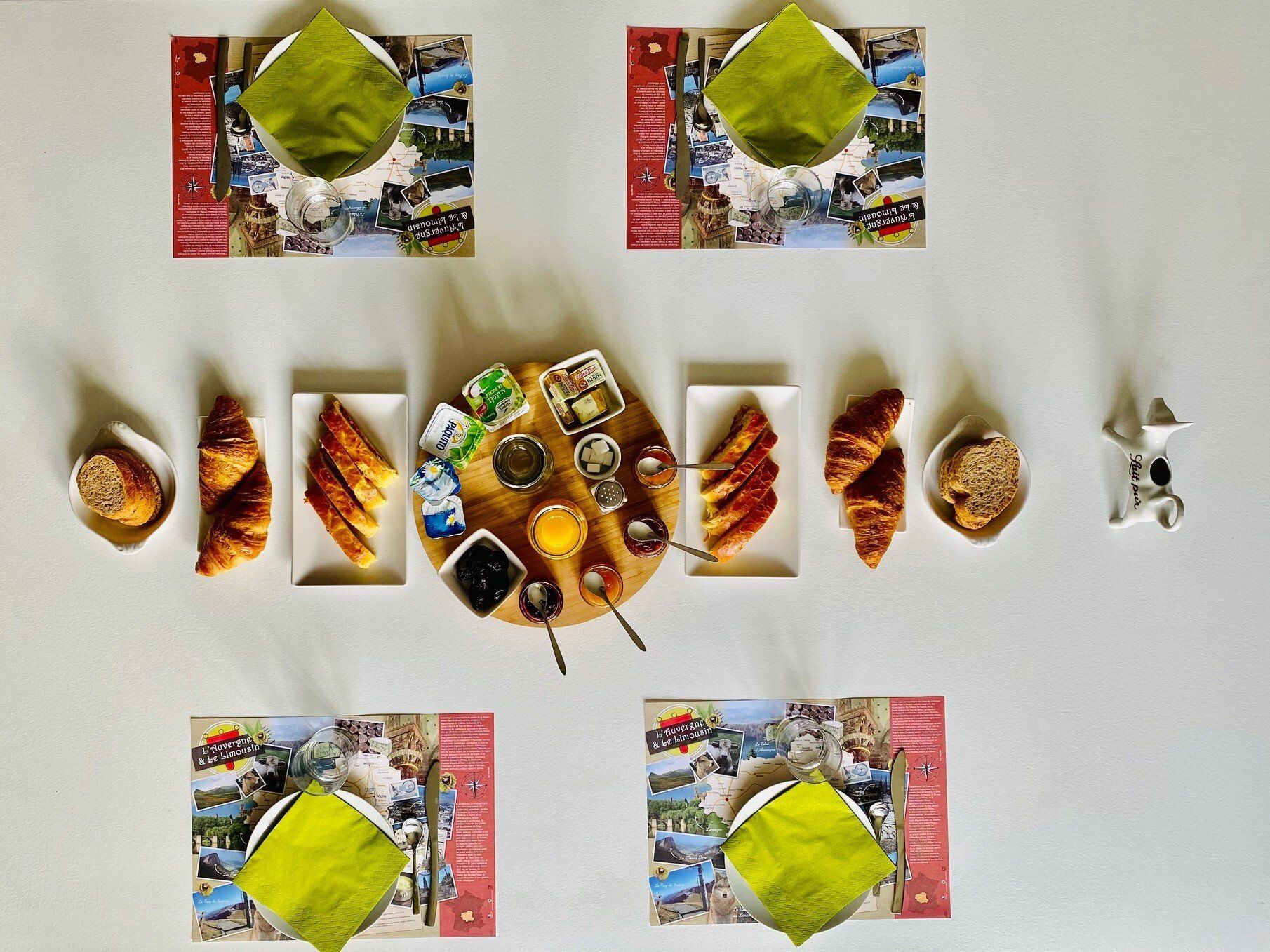 Les petits déjeuners sont servis dans notre salle à manger, dans la Sallatou ou sur une de nos trois terrasses,