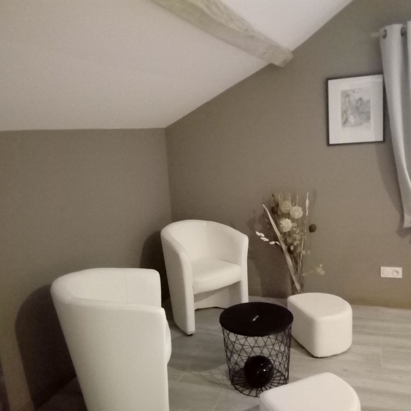 Située à l'étage de notre demeure, à coté de la chambre Chocolat, elle dispose d'un accès libre par un escalier extérieur, pour votre indépendance.
